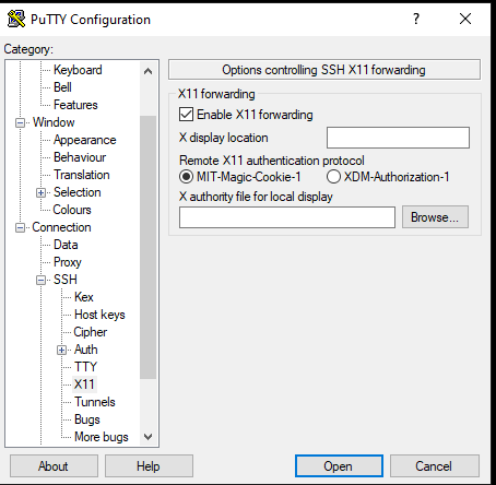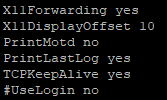 This opens up the SSH config file. We need to find the X11Forwarding parameter. In my case it is set to yes, so no other configuration needed on the server side of the house.