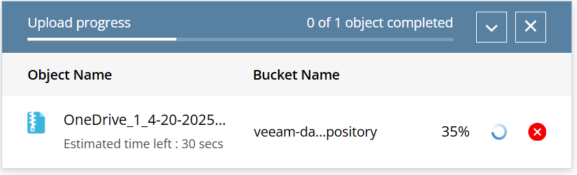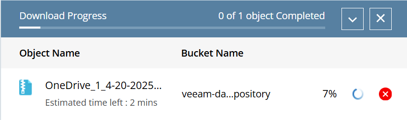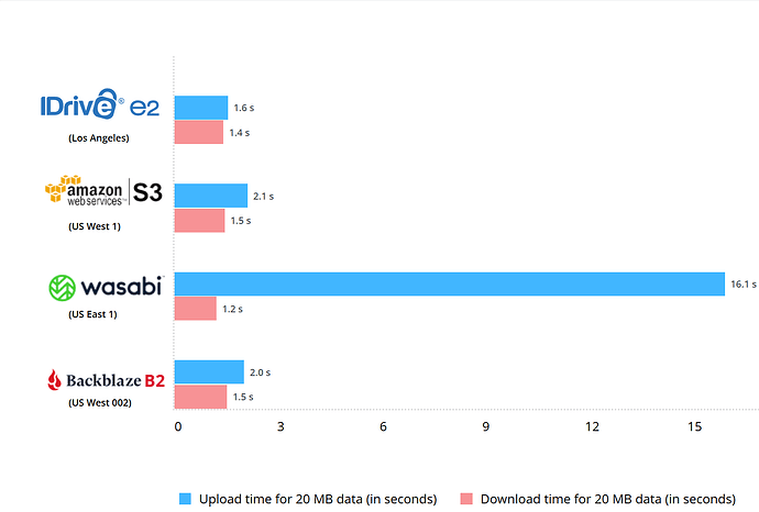 It’s great to have over 100TB of storage available to me, however, it’s useless if I cannot get the data onto the platform promptly, so let’s see how quickly we can add and remove data from the platform. Before we get into that, a handy speed test on the IDrive website speed testcompares speeds against AWS S3, Backblaze, and Wasabi. Below is a screenshot of the speed test that I ran. It’s worth noting that I ran the test in an airport lounge, on shared wifi, at questionable speed.