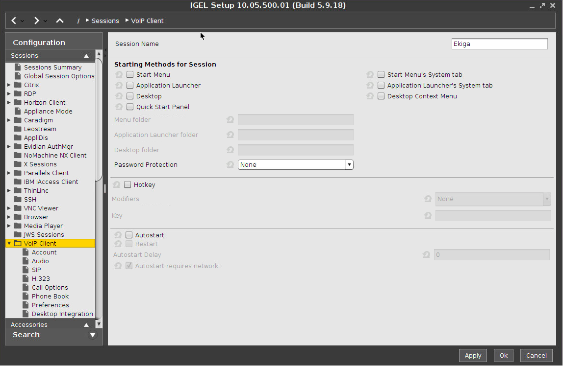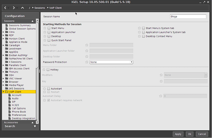 The first thing we need to do is enable the Ekiga VOIP client within the IGEL OS Profile