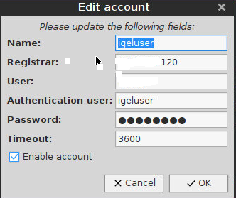 Once launched, we need to edit the Account information on the SIP client, and ensure it is enabled. The Registrar is a call manager subscriber, and the authentication user is the usr you created in step 3.