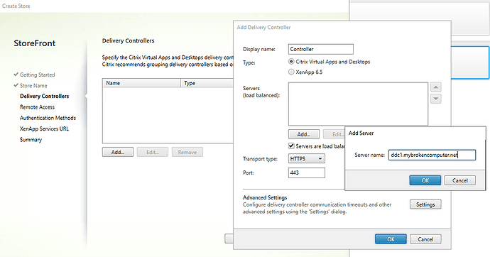 Specify the Citrix virtual apps and desktops delivery controllers or xenapp servers for the store. Citrix recommends grouping delivery controllers based on deployments.