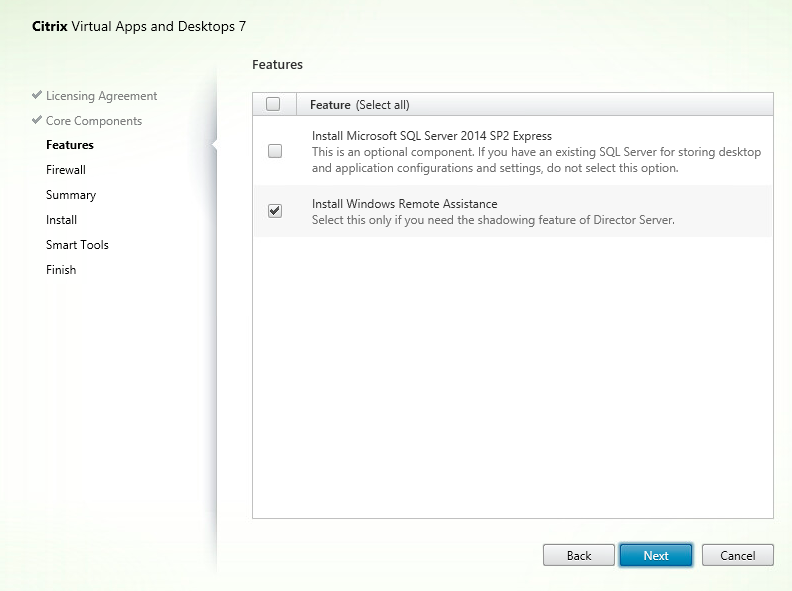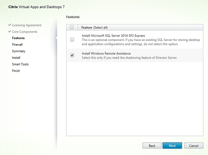 We are then given the option to Install SQL 2014 Ex[ress SP2, however we are not going to use this, as we have a full blown SQL installation, that we are going to use for other Citrix components (looking at you Workspace Environment Manager)