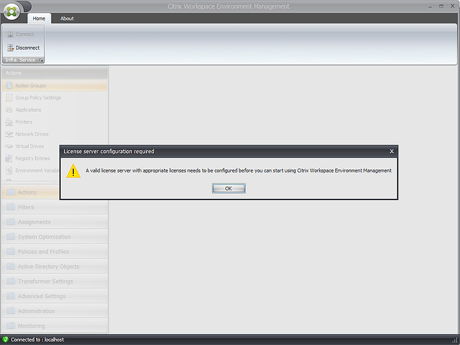 Now when trying to connect the console to the infrastructure, I get a license error, which I thought I just fixed.