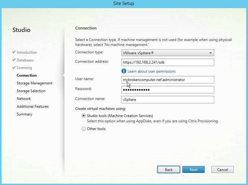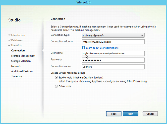 Long story short, we need to configure our Citrix hosting connection to talk to a vCenter server, and not directly to an ESXi host. So, let’s reconfigure things to point to vCenter.