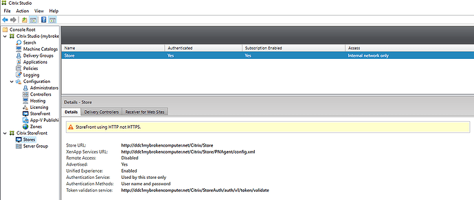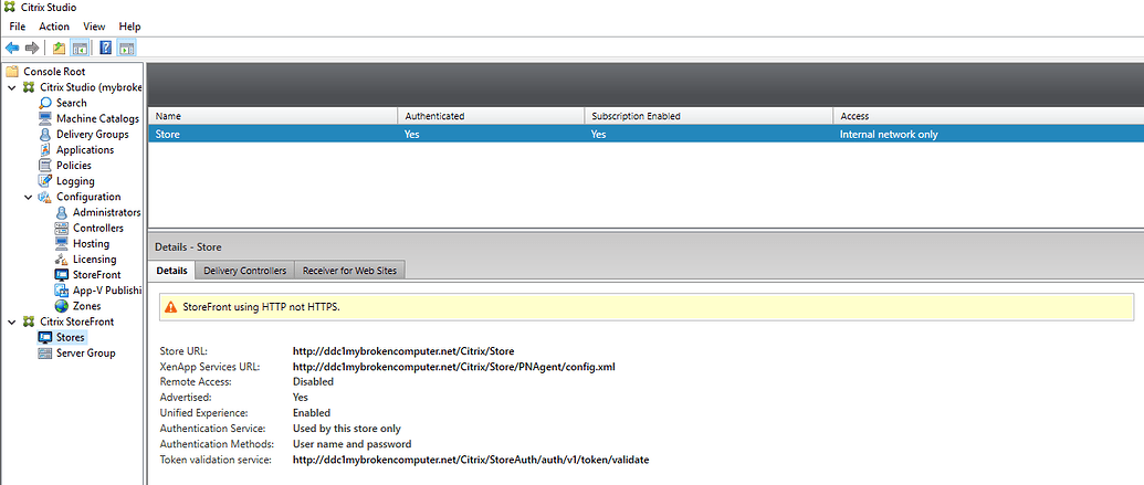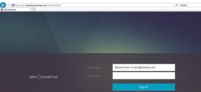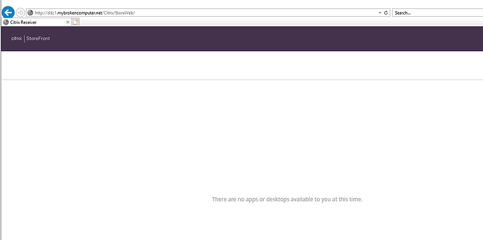 additionally we should be able to browse to the store front URL and log into storefront so let’s test that. Open a browser, and enter the URL of your Storefront Store. In my case the url is https://dd1.mybrokencomputer.net/Citrix/StoreWeb