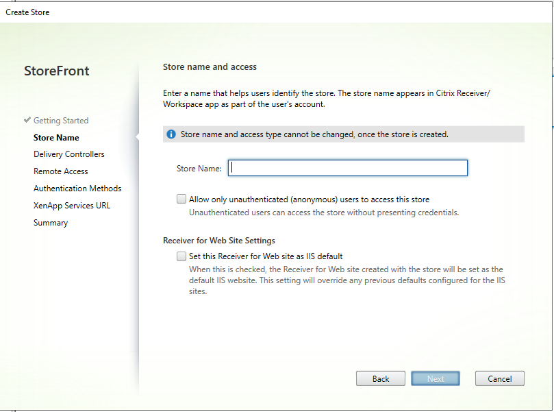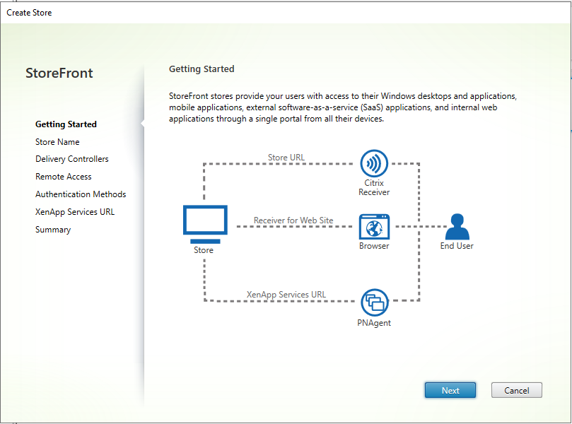 By default Citrix Storefront is not installed as part of installing Citrix studio it is a separate component that needs to be installed independently. The installation itself is pretty straightforward it’s really 2 clicks next next next and install. once the installation completes you’re prompted to configure the store I’m gonna walk you through it and do in this blog post.