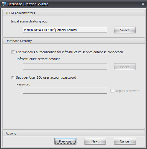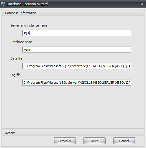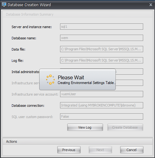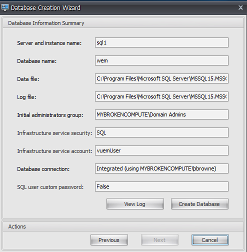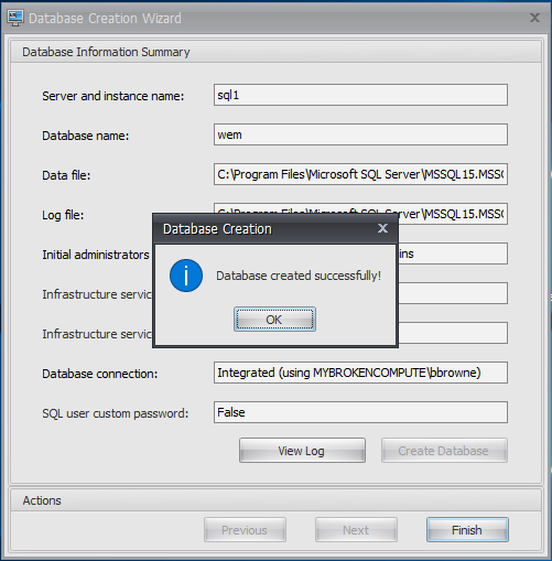 Once installed, we need to configure WEM with a SQL database. As far as I am aware, SQL Express is not supported, so you will need a ful SQL server . Good thing we did that earlier in this post eh?