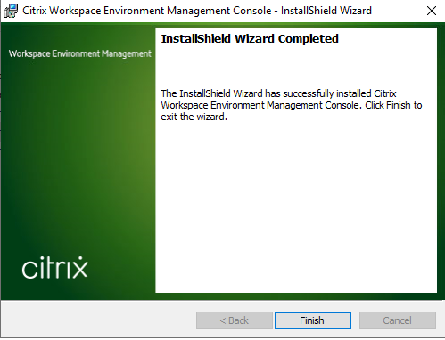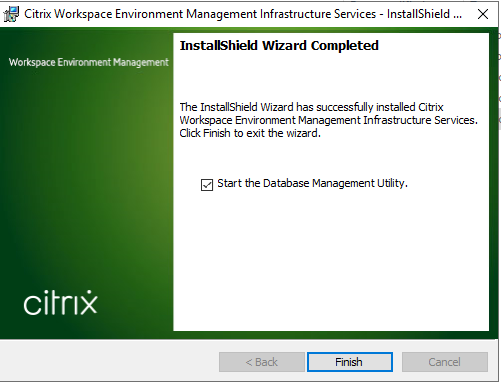 Click finish. That’s it for the DB config, so we can close out this app. We now need to install the Citrix Workspace Environment Manger Console Setup application.