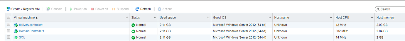 Once you have those two elements in place, you are ready to start the deployment. In my lab, I am running three VM’s for each of the mandatory backbone components. A domain controller, a Citrix Delivery Controller and a SQL server.