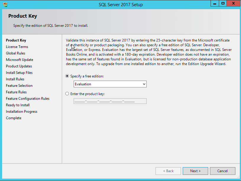 AS this is a lab, we are going to go with an evaluation license of SQL server 2017