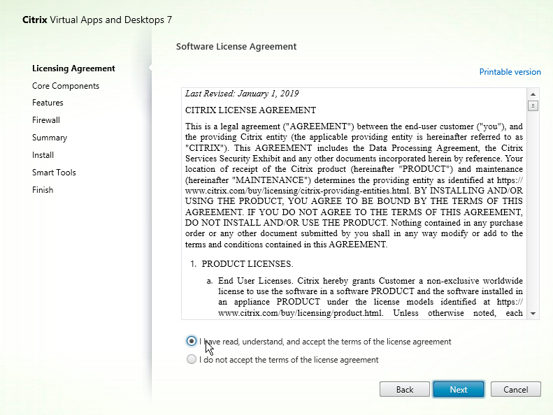 Again, we have to pay the lawyers, so accept the Citrix Software License Agreement.