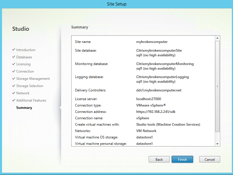 And with that, the core components of Citrix are installed. Now we need to configure them