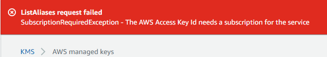 After looking into other services, I was getting rather strange errors on some others. Here is the error in AWS Key Management Service (KMS)